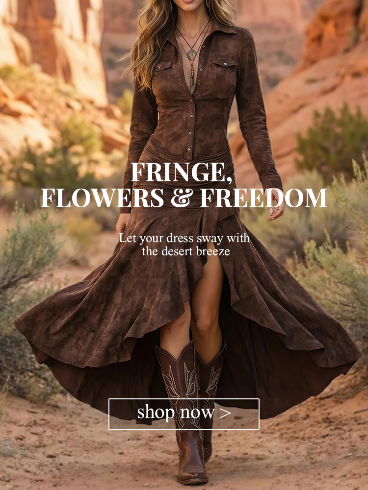 Women's Retro Suede Waist-cinching Long Dress With Belt