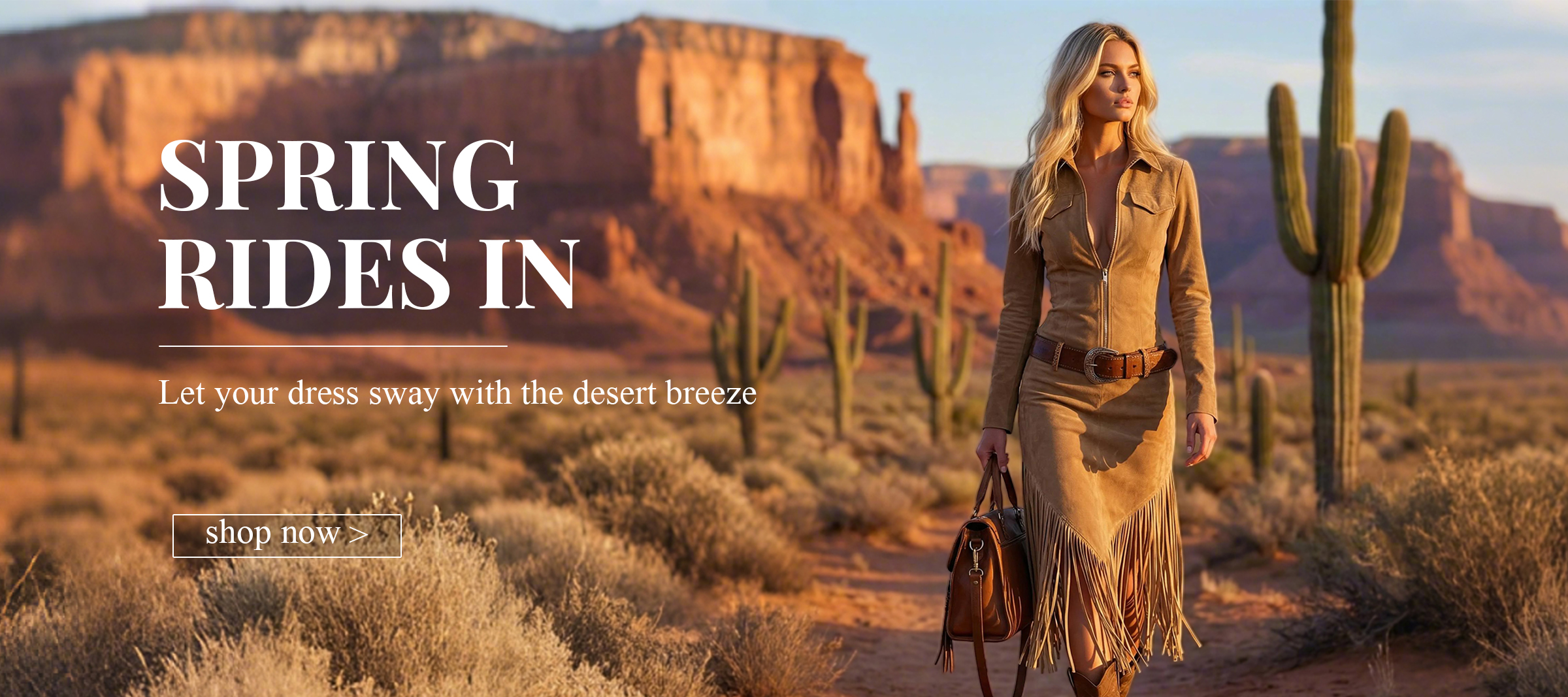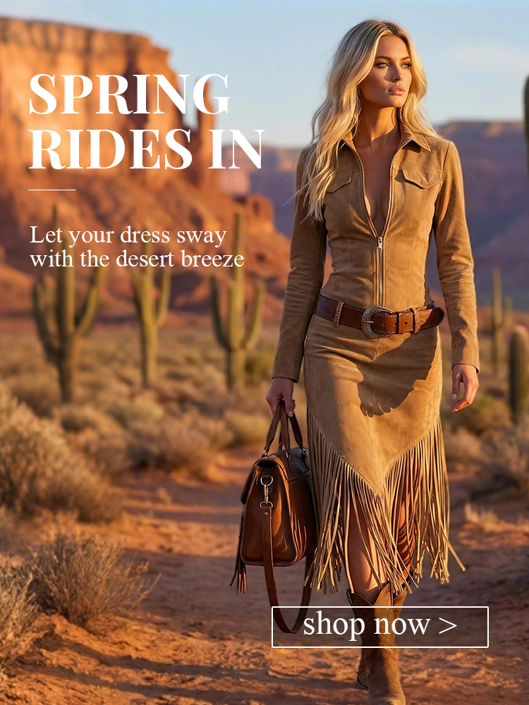 Vintage Western Denim Style Suede Fringed Slim Fit Dress