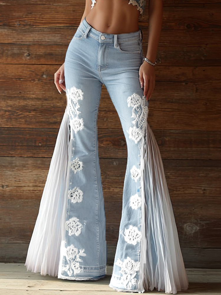 Vintage Bohemian Floral Lace-paneled Flared Jeans$106.99