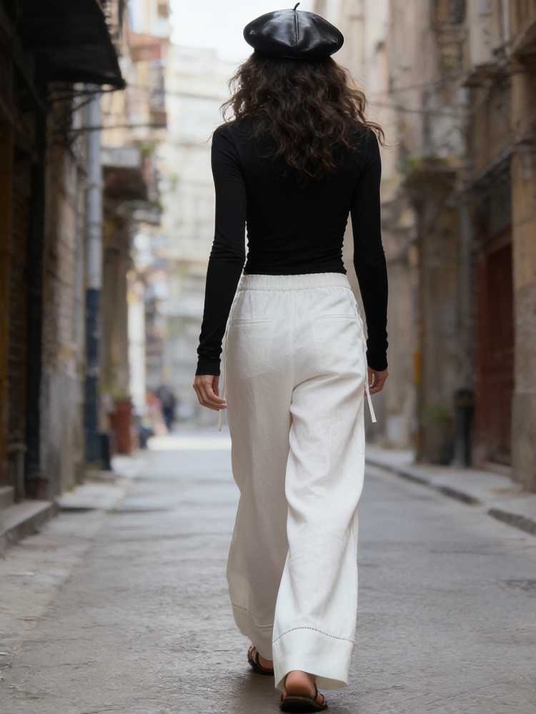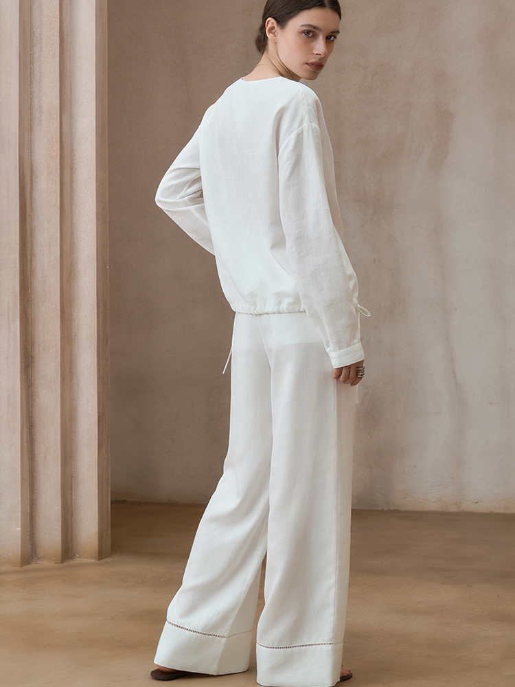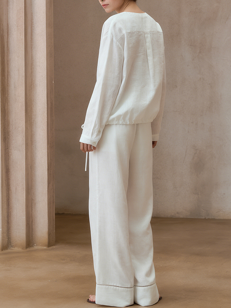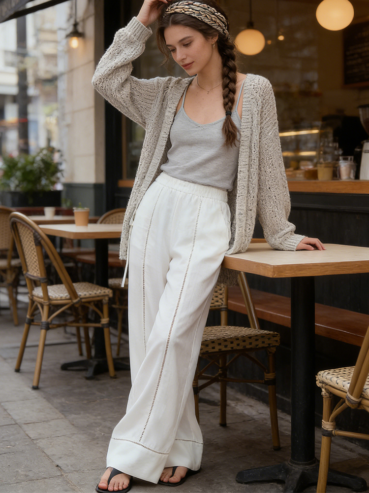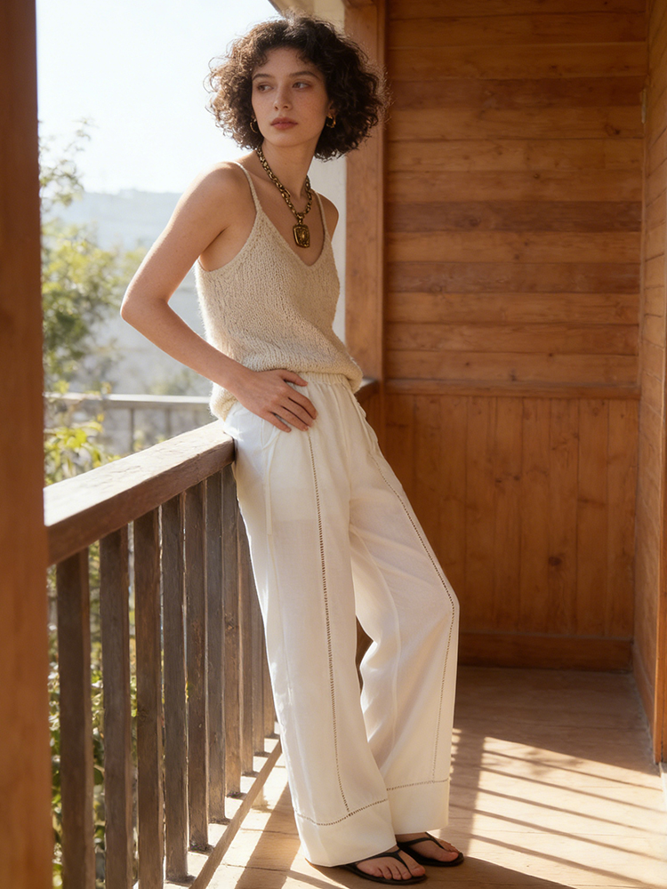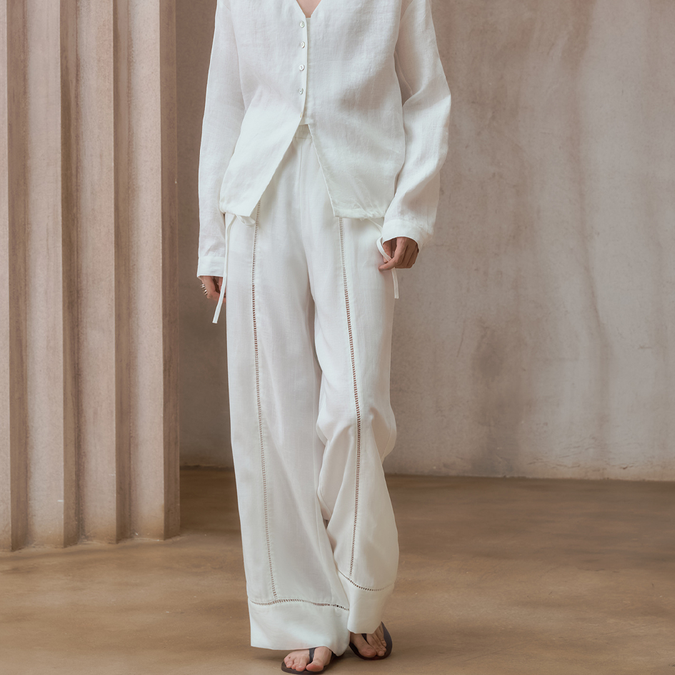 Lazy Leisure Loose Lace Design Linen Long Pants