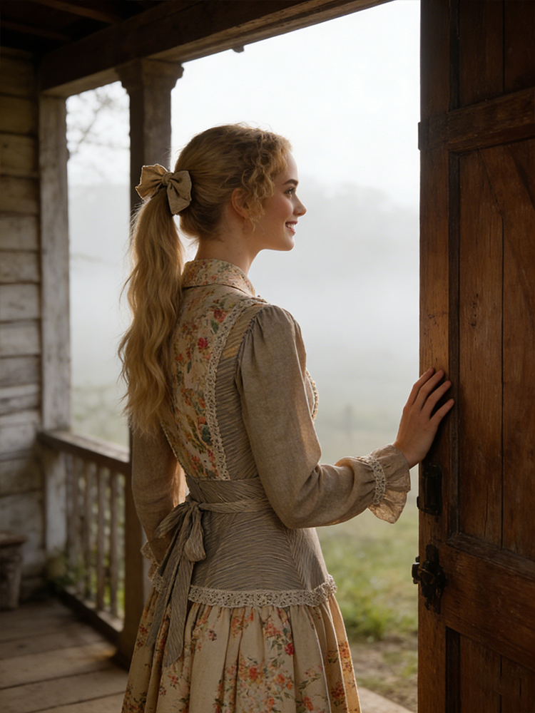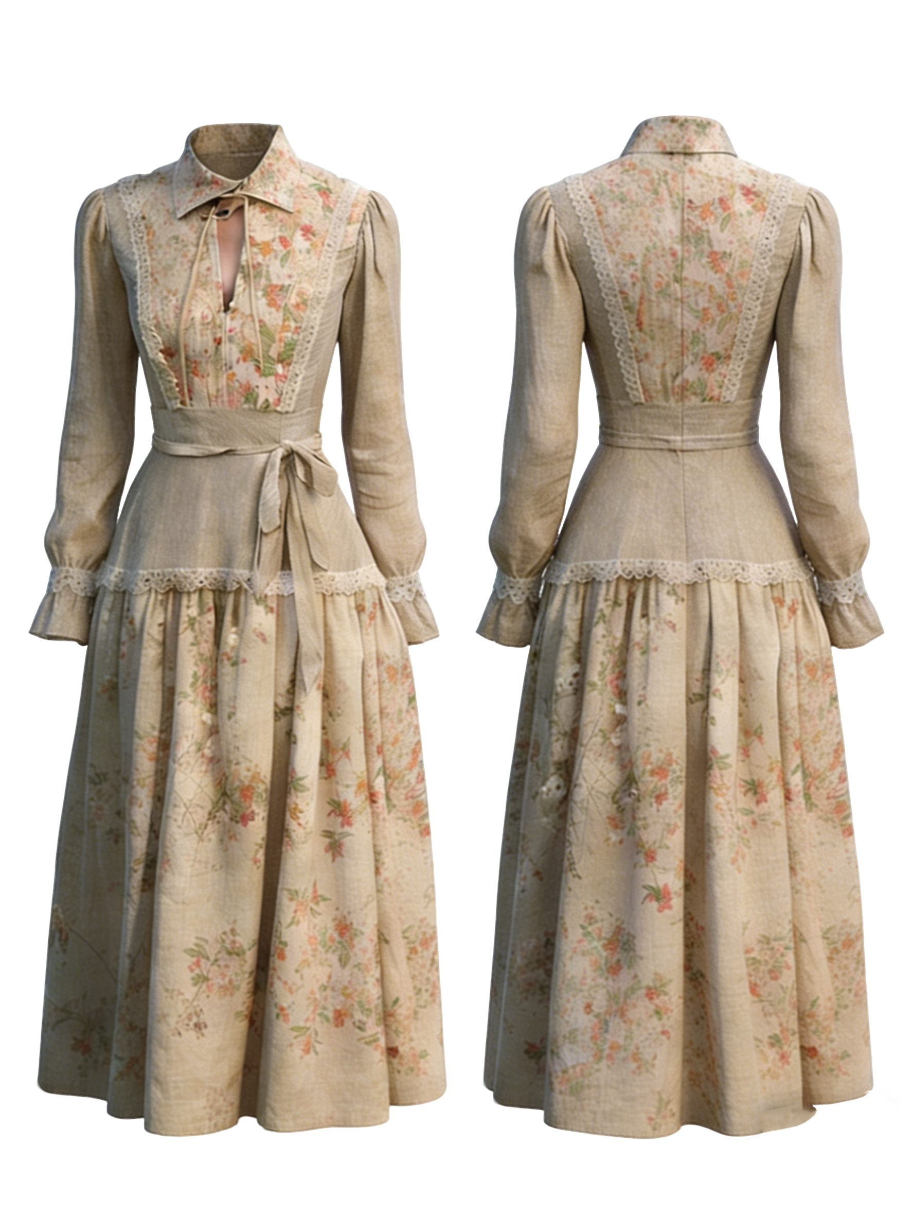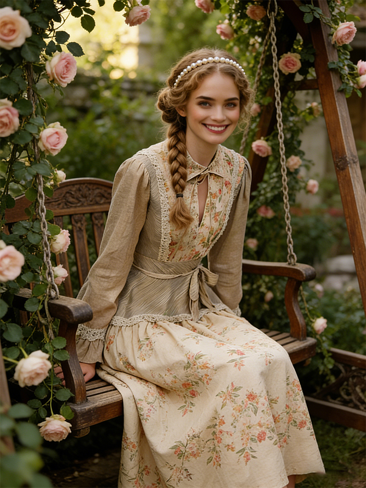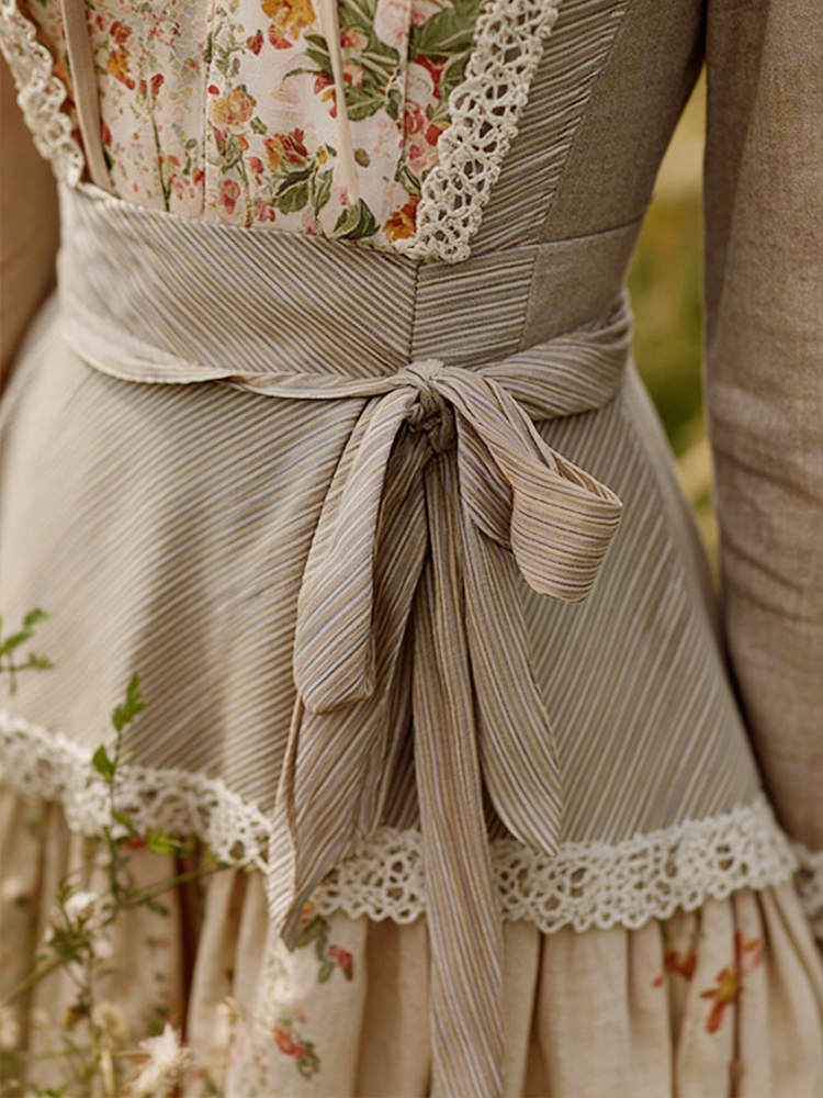 Retro Countryside Style Patchwork Design Linen Dress