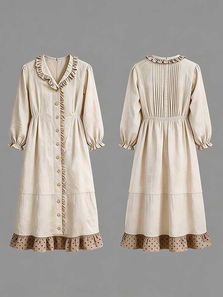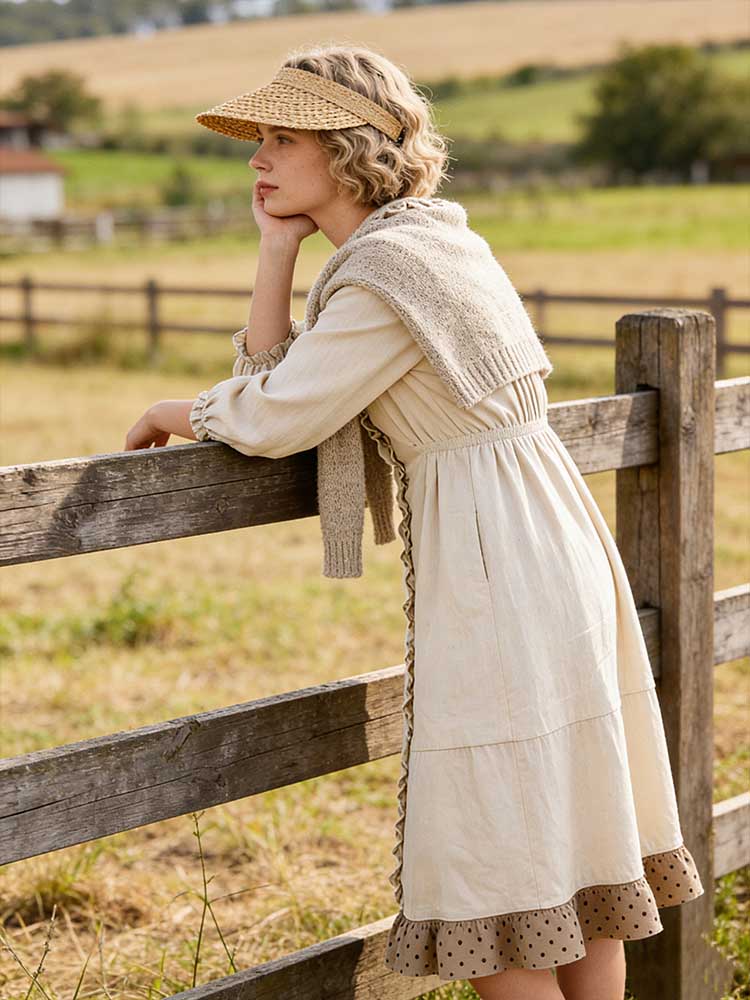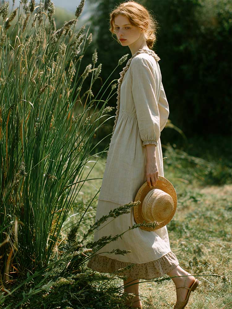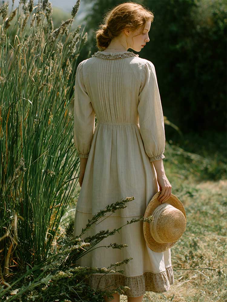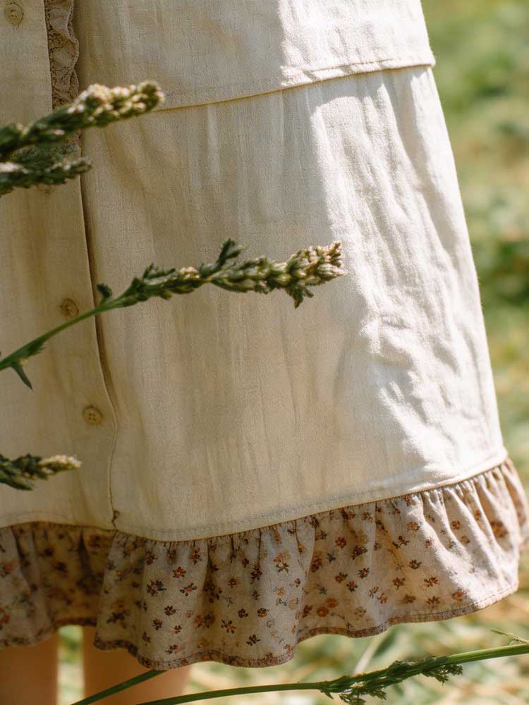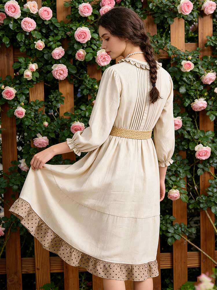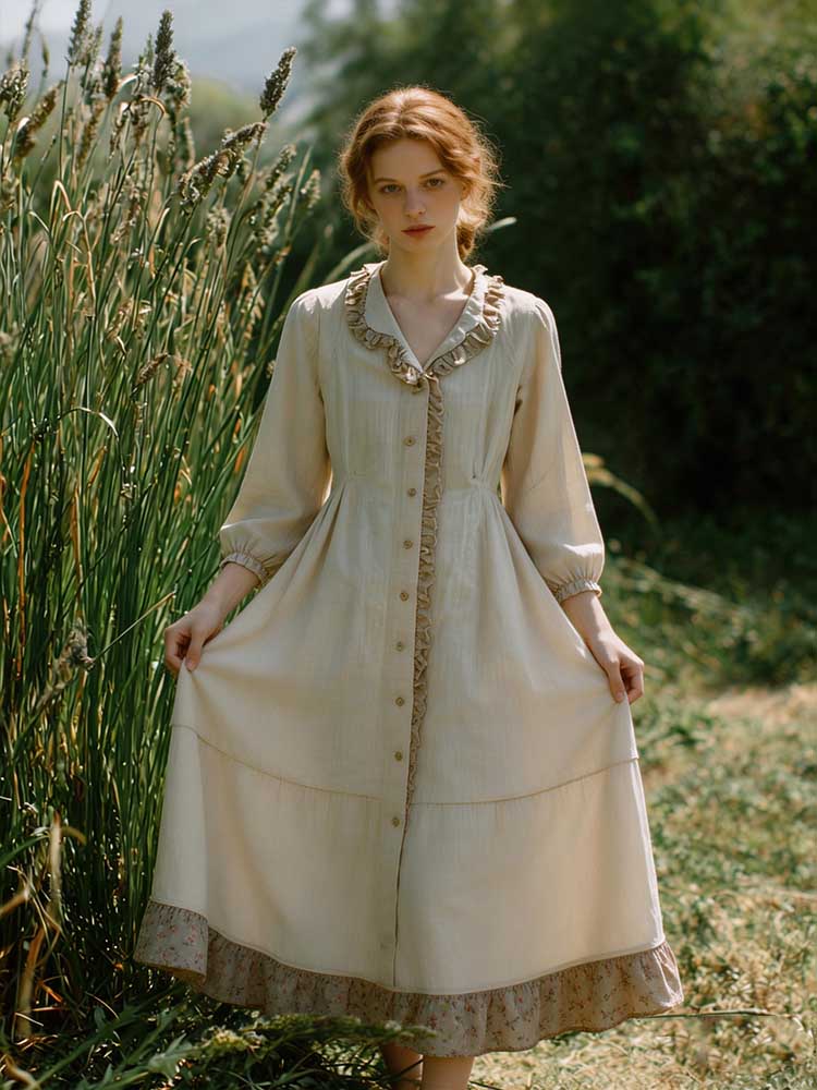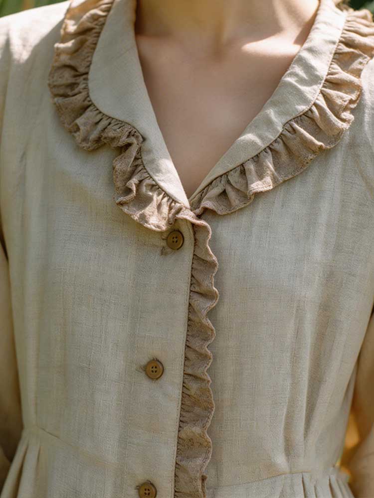 Retro Lace Patchwork Design Casual Linen Dress