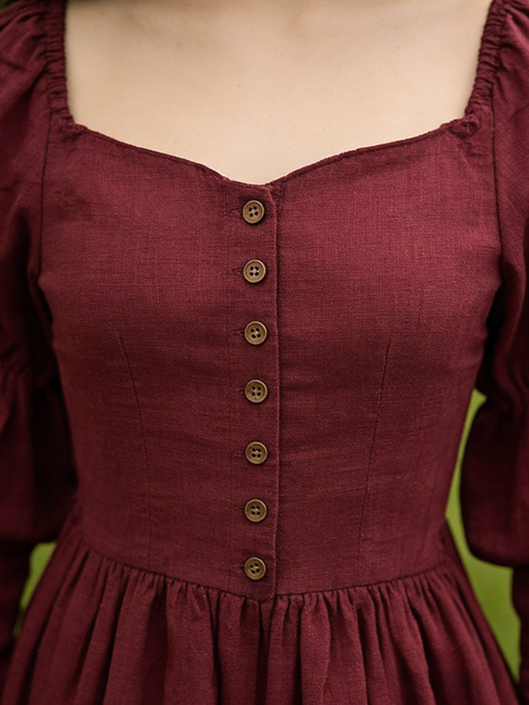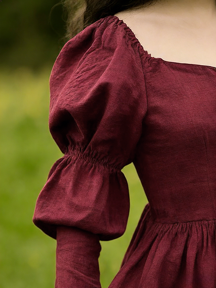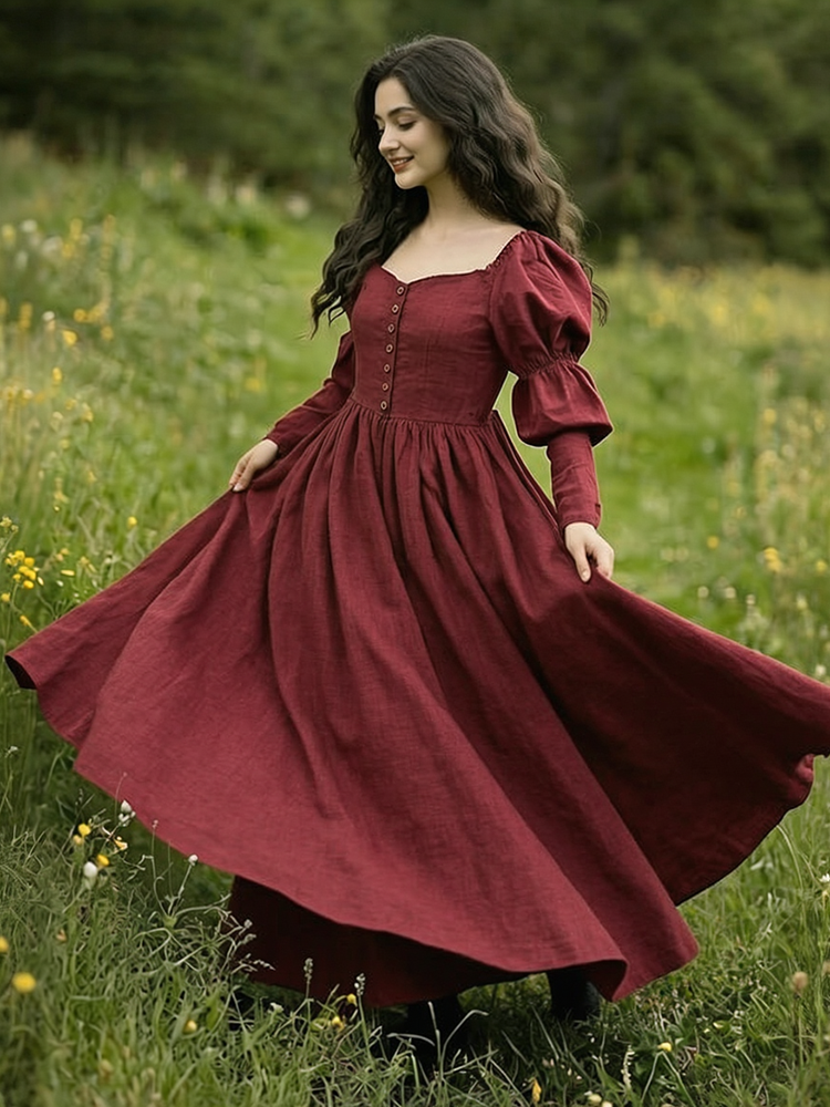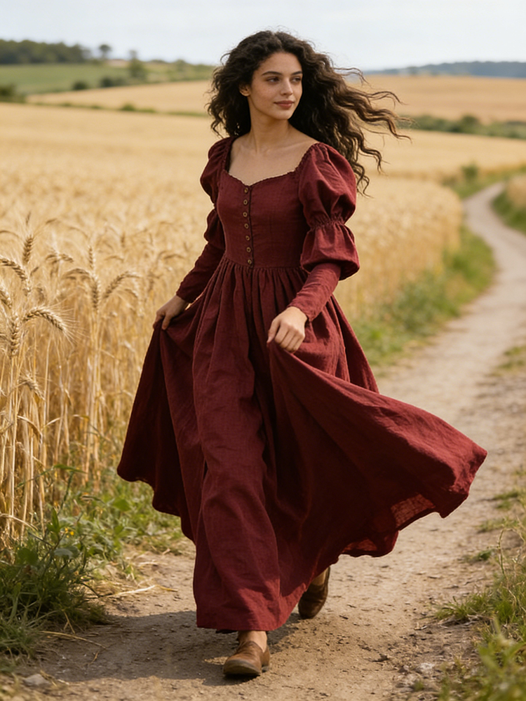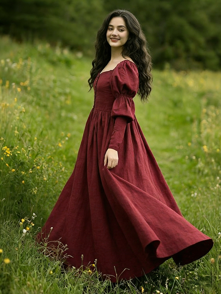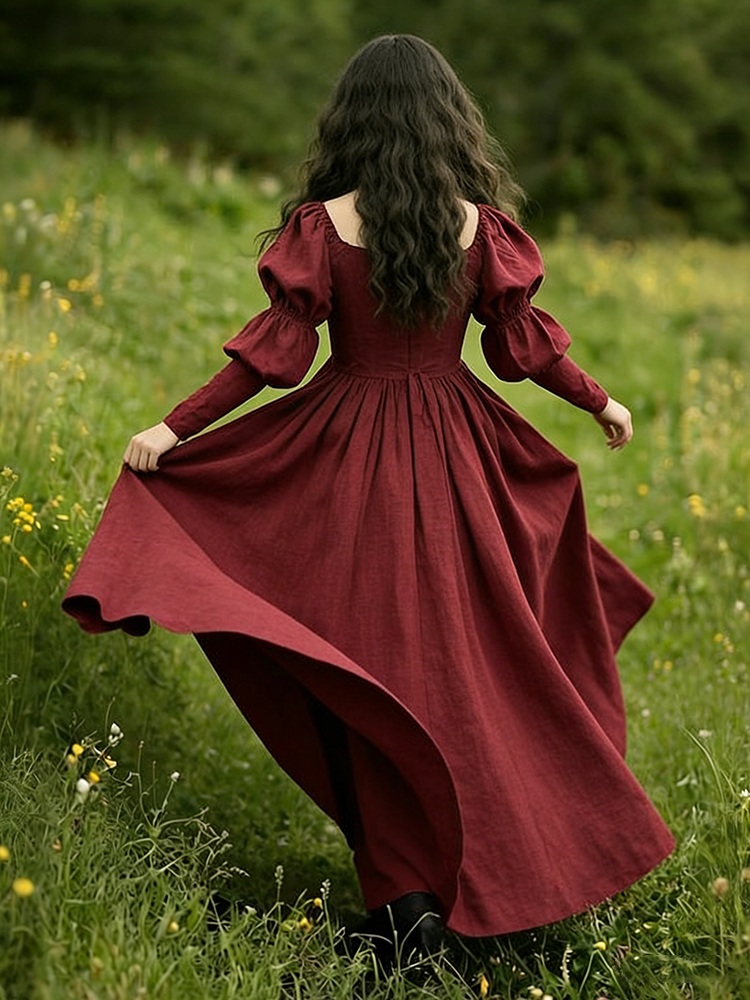 Vintage Classy Long Sleeve Pleated Maxi Dress