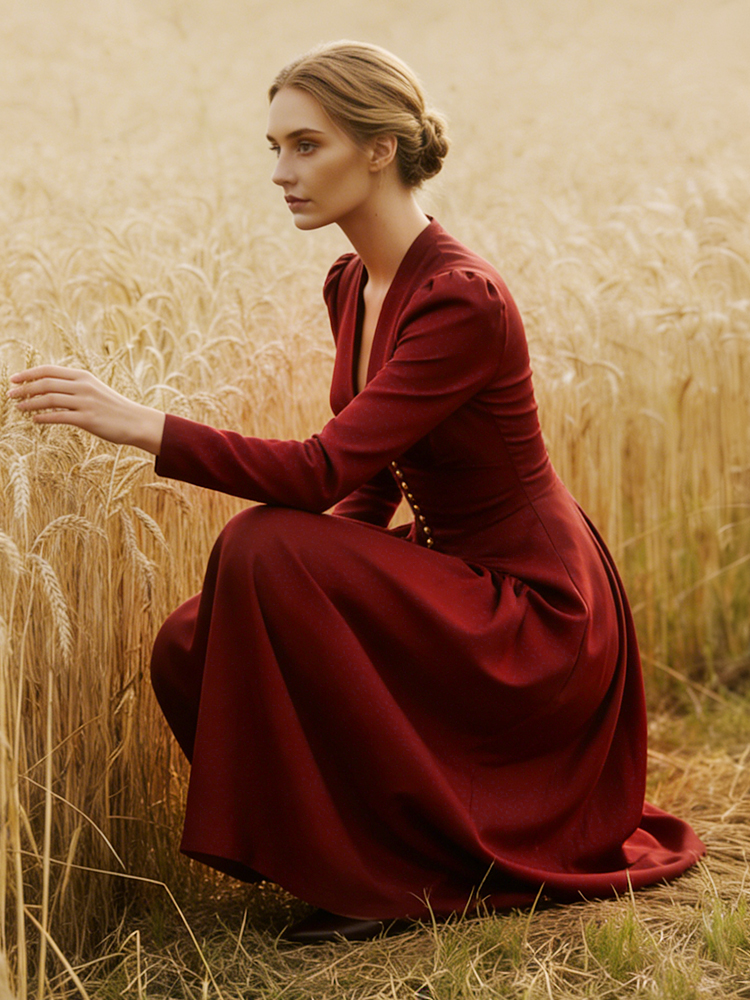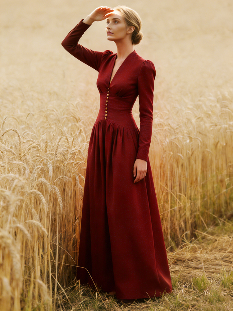 Vintage Classy V Neck Flowy Linen Maxi Dress