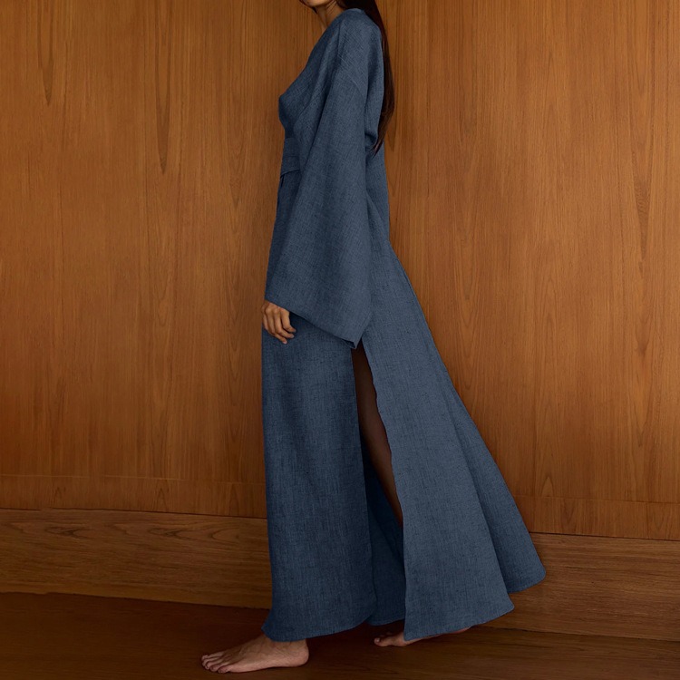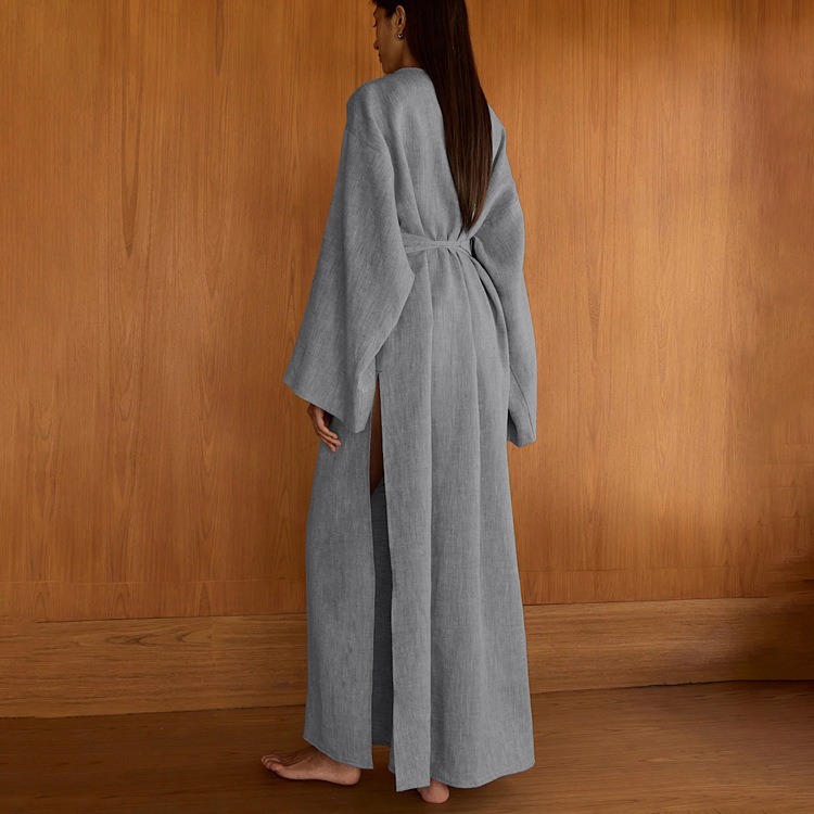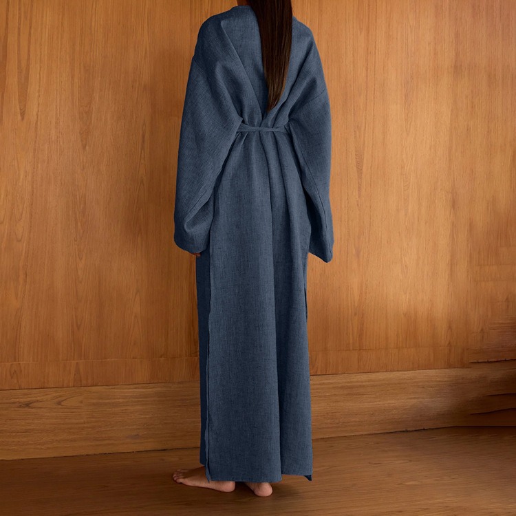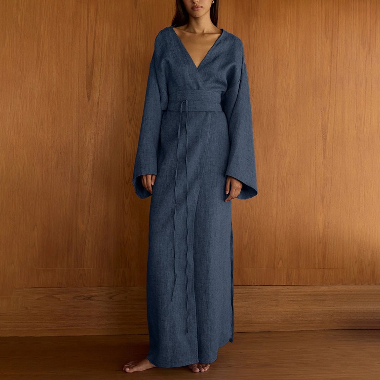 Vintage Cross-over Design V-neck Cotton Linen Dress