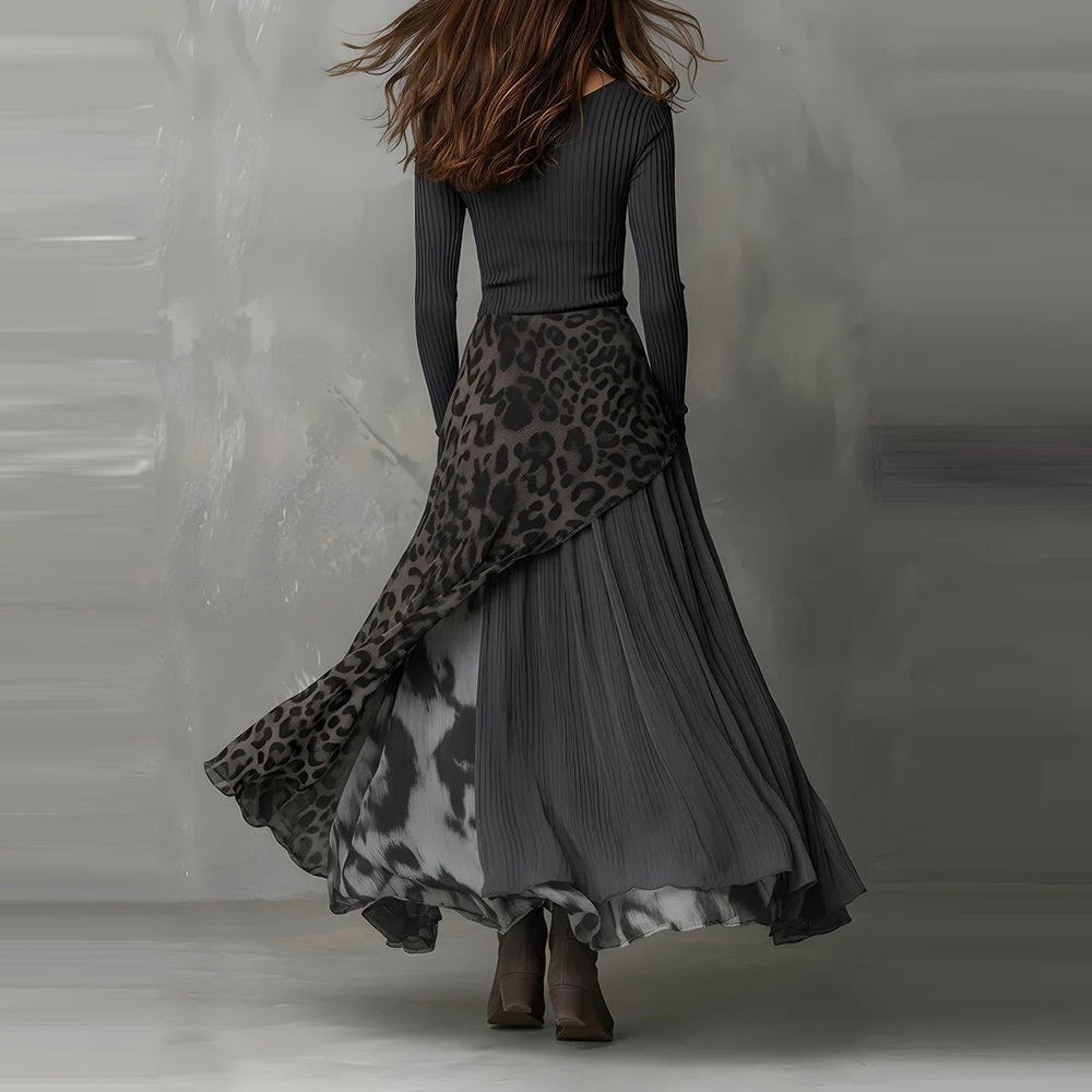 Vintage Leopard Print Slim Fit Patchwork Maxi Dress
