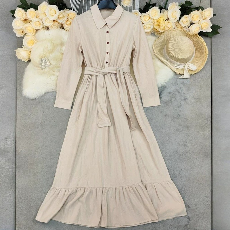 Women's Boho Solid Color Buttons Linen Blend Maxi Dress