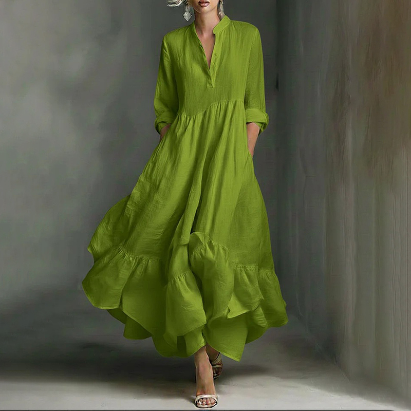 Women's Flowy Solid Color Buttons Linen Blend Maxi Bud Dress