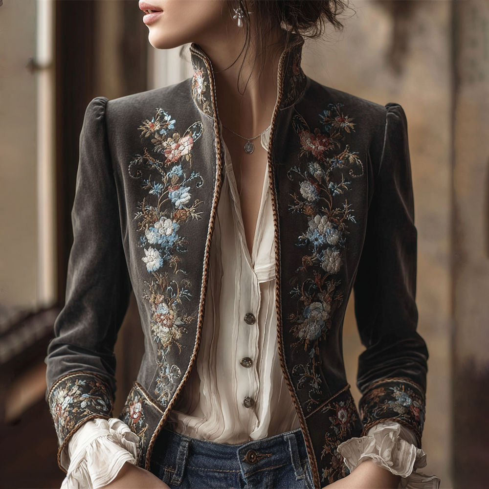 Women's Vintage Standing Collar Embroidered Jacket